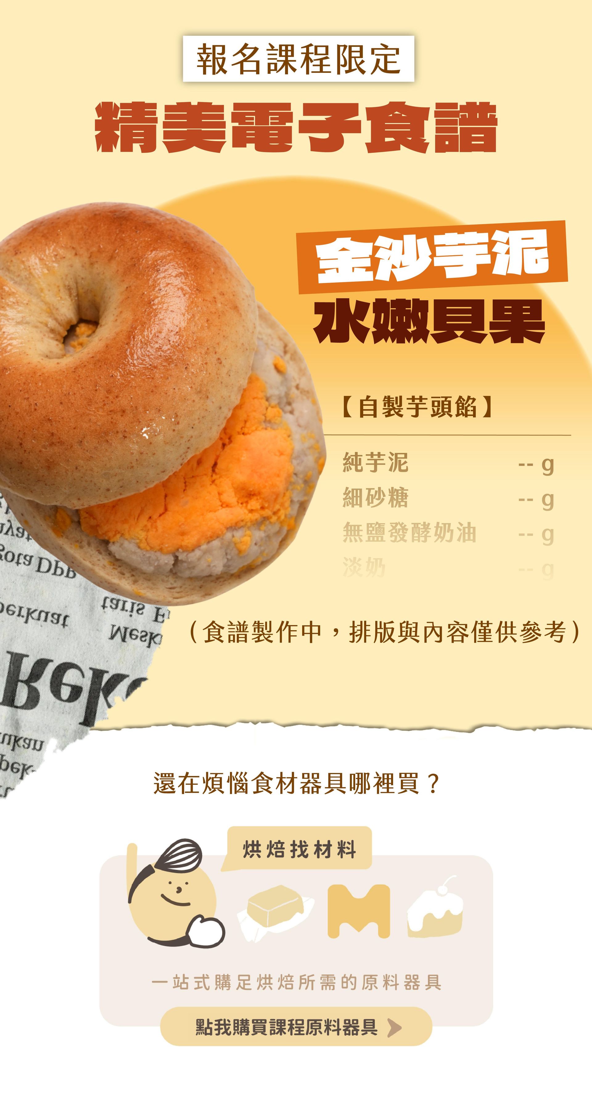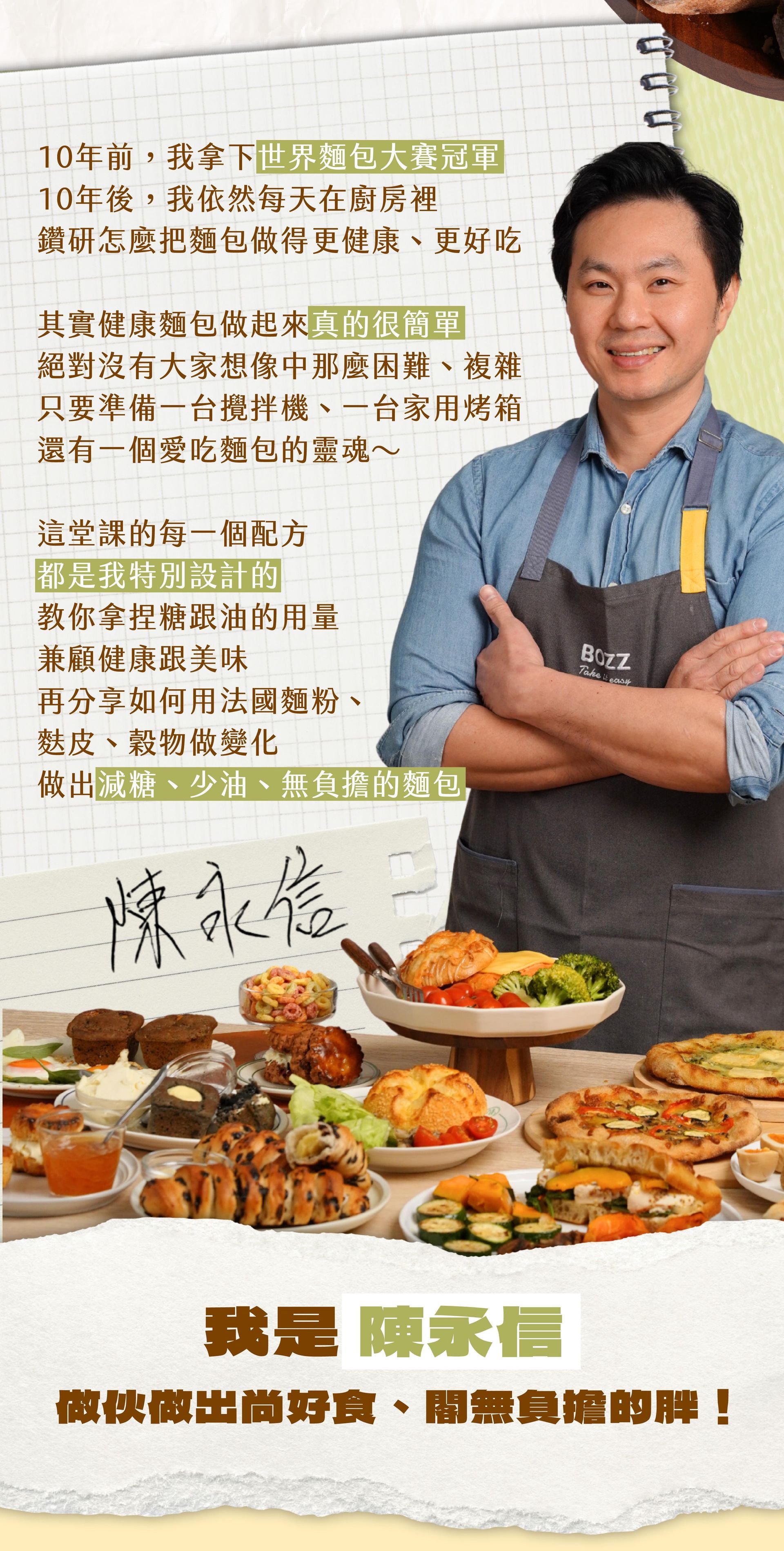 *課程中所使用的「減麩質」與「發酵麥纖」專用粉,皆會教學如何以常見粉類替換,同學們可以放心唷!