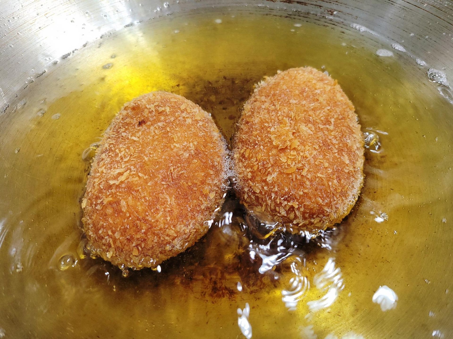 起油鍋、下鍋炸,等表皮轉為誘人的焦糖色,一顆顆日式咖哩麵包,終於誕生!真的好想趁熱大口咬下啊!
