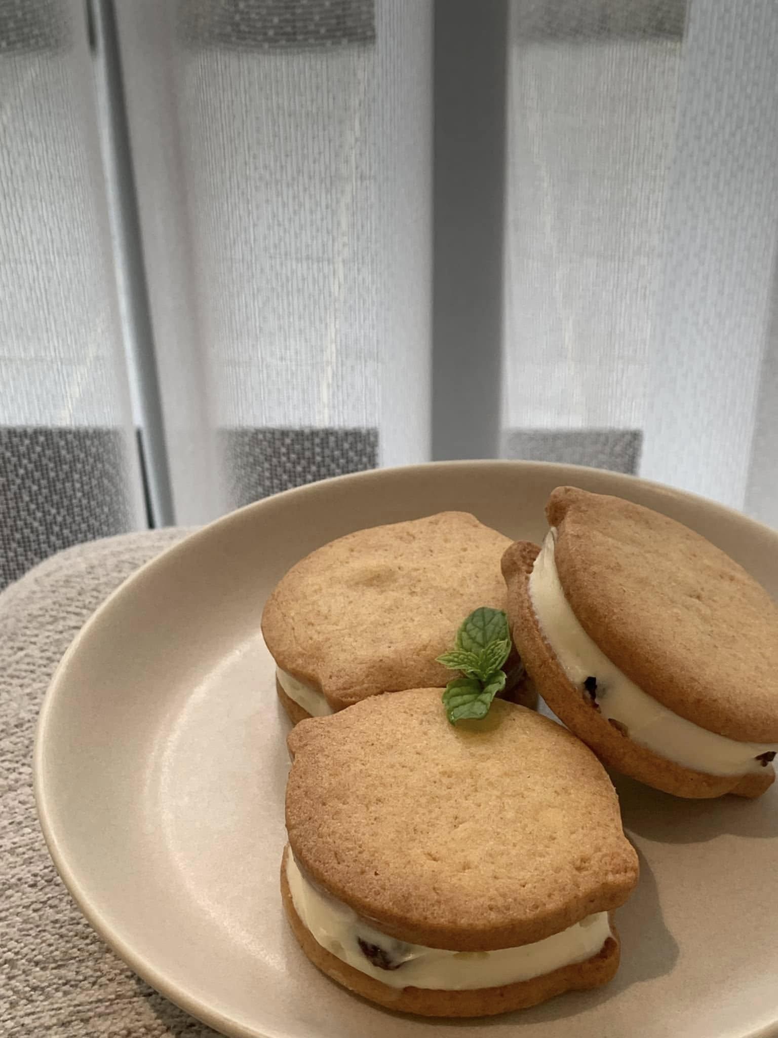 很喜歡小麥菓子的產品剛好看到佐山真衣老師開課就毫不猶豫買了線上課程,第一次上線上課程,老師講解的很仔細,內容簡單又明瞭。趕快上來交作業蘭姆葡萄夾心餅乾