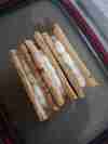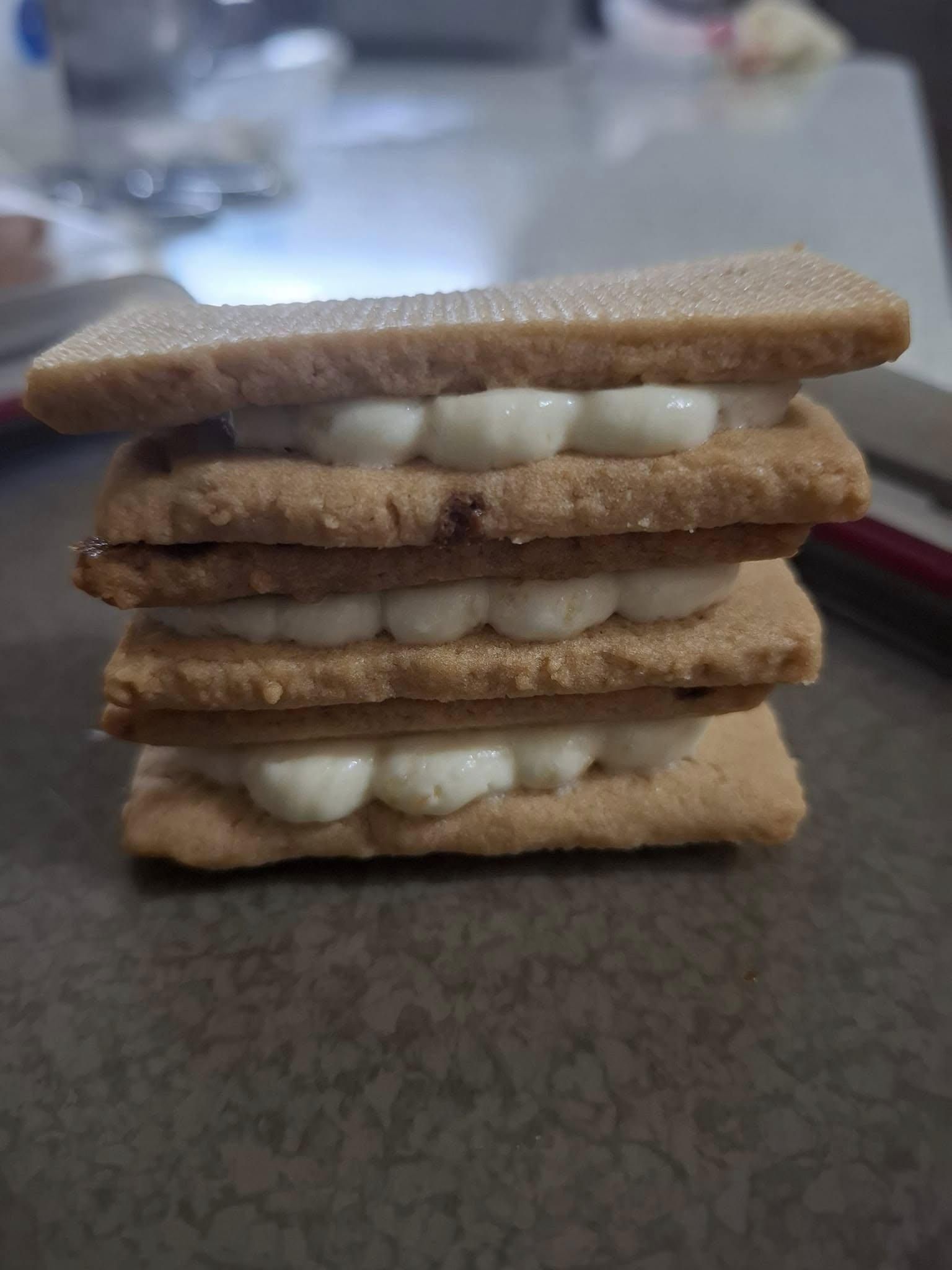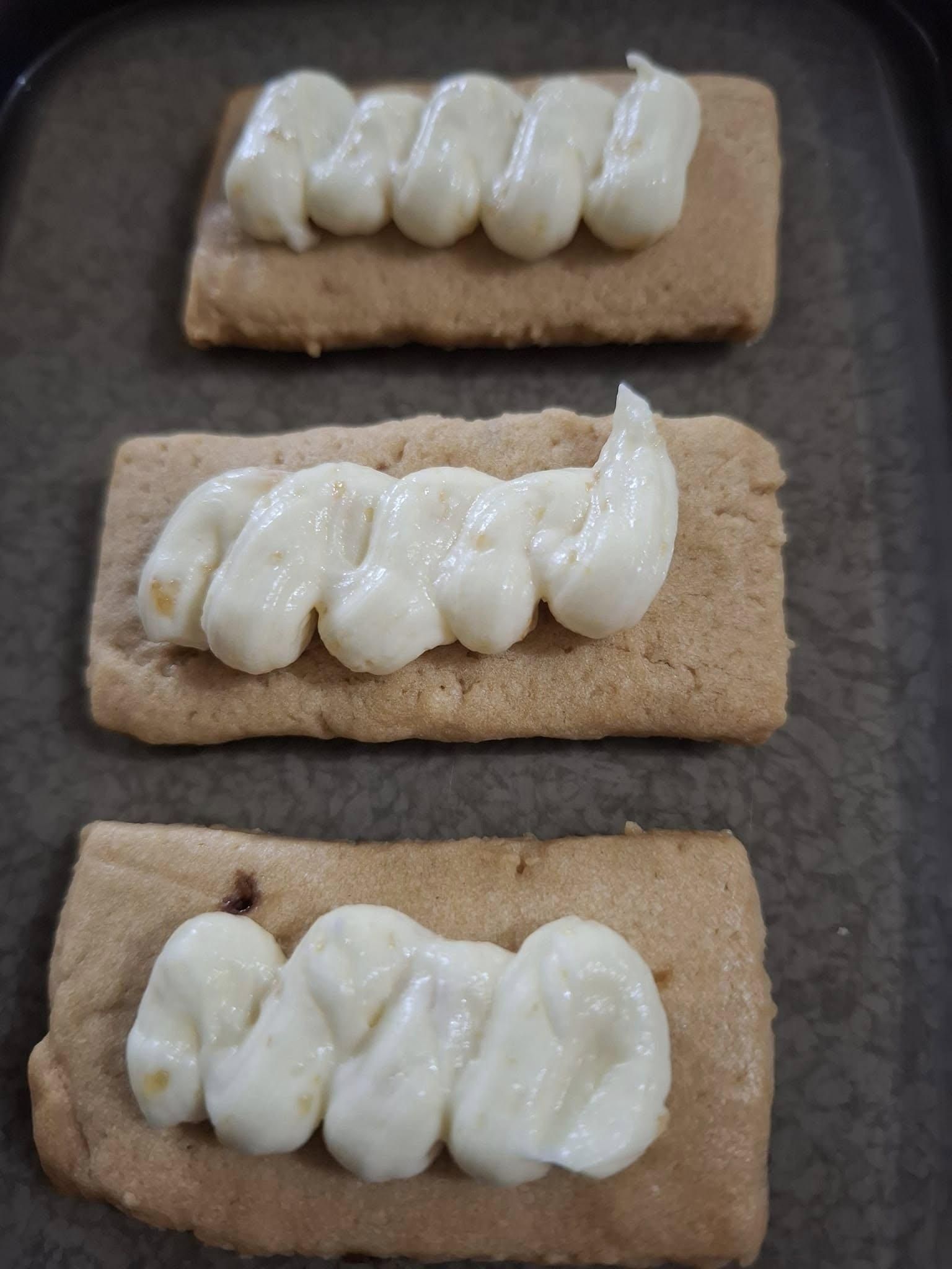 謝謝老師課程,餅乾好吃,內餡非常多變,也好做。 剛好手上有西西里檸檬醬,做成檸檬內餡的口味,奶油乳酪我用下圖這款,份量少,適合少量製作,全聯就買的到非常方便,給其他同學參考。 另外分享一個分割餅乾方法,把餅乾整形非常方正,切切就好🤣