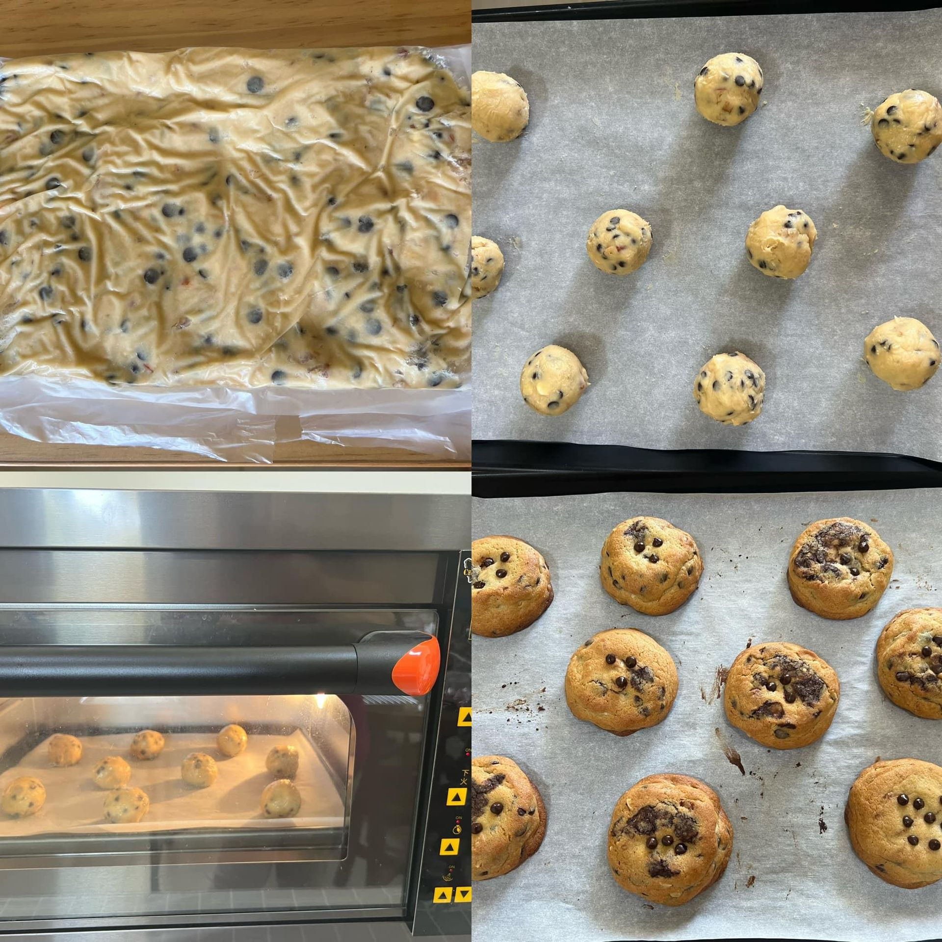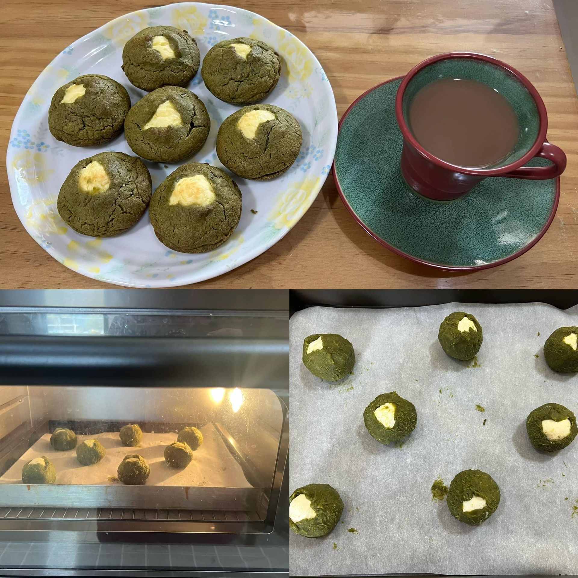 第一次接觸到暖(軟)餅乾的課程,上禮拜趕緊去買材料,影片認真看了3遍,今天終於動手做啦! 第一個先試做,巧克力核桃,我放了切碎的綜合堅果,覺得不難,於是再做第二種口味,極濃抹茶乳酪,很新鮮特別的組合,做的時候有點小緊張,但成品真的好香,好好吃😋