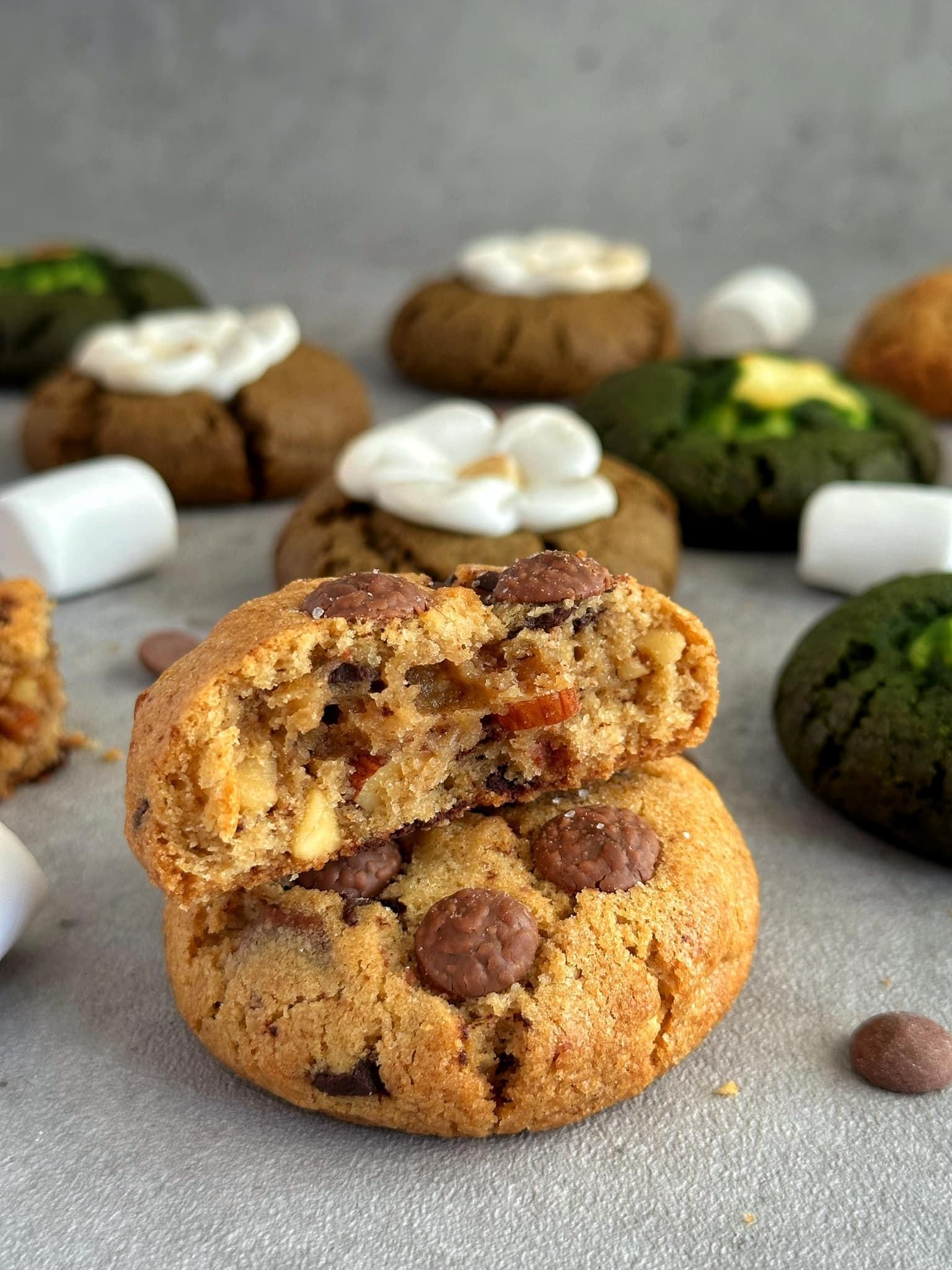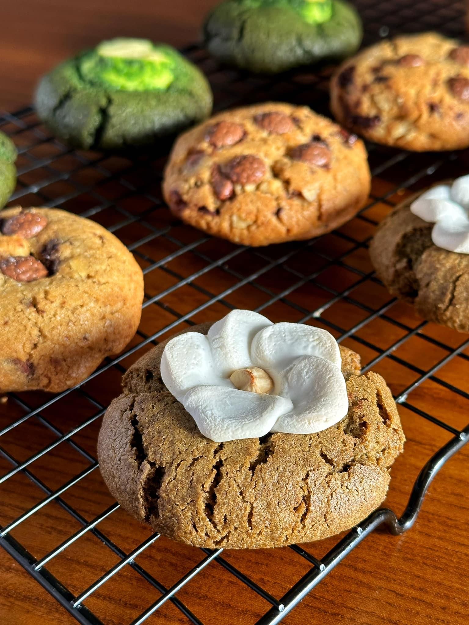非常期待Mrya老師的這堂暖餅乾風味製造所,拿到影片後一次做了三個口味:巧克力堅果、紅烏龍棉花糖、極濃抹茶乳酪。