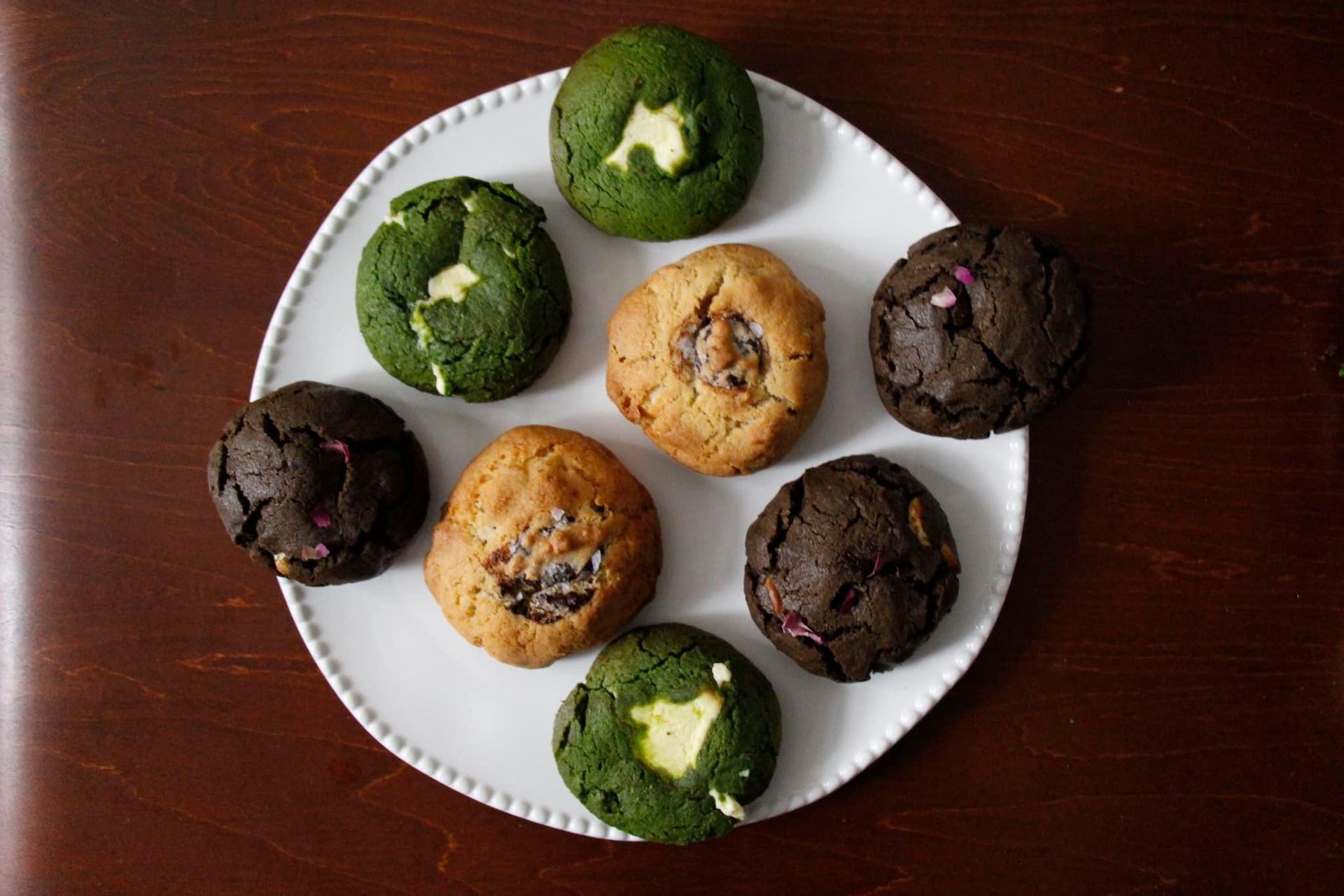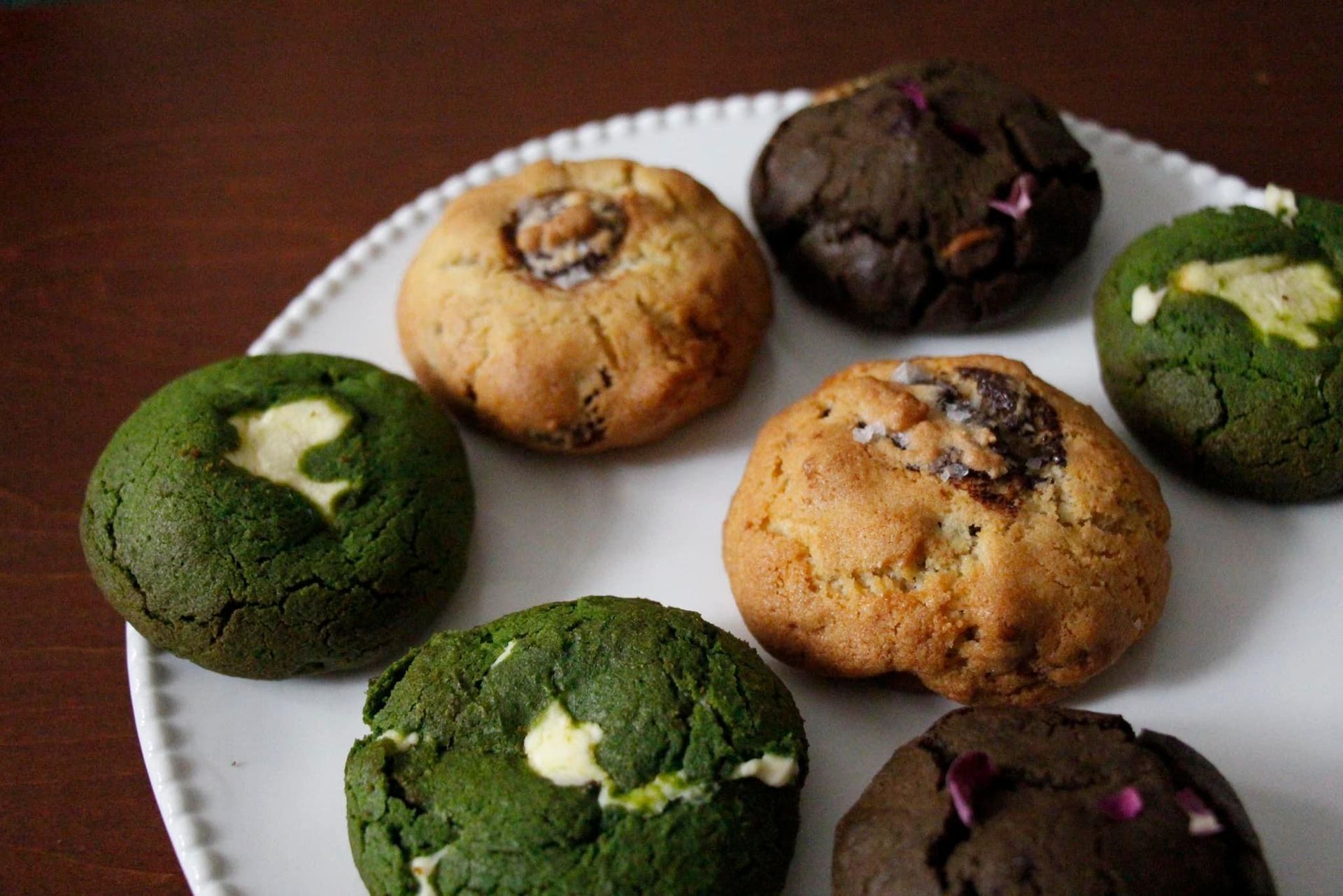必定要先來個經典不敗的巧克力核桃,軟餅乾就是要這個味兒😘海鹽妝點味道更加成 極濃抹茶乳酪是私心,濃郁微苦抹茶配上白拋拋的乳酪,視覺和味覺雙響受。 玫瑰鐵觀音好特別,出爐擠上玫瑰果醬太誘人,忍不住立刻咬了一大口,茶香花香盈滿口。