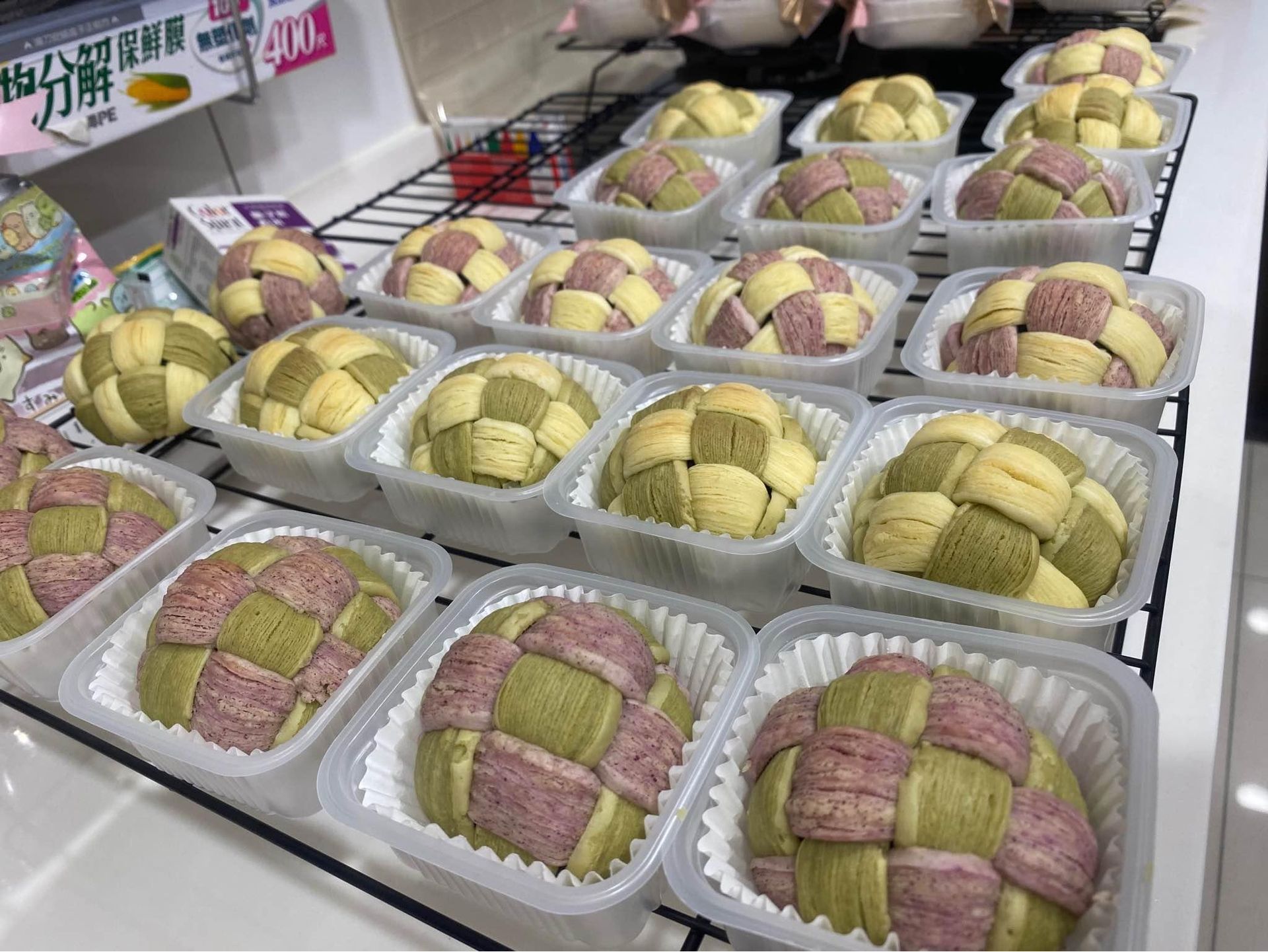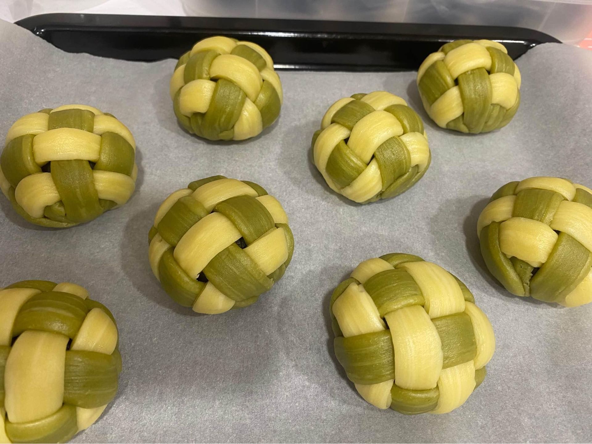 這次在線上學了繡球酥, 沒有色膏, 只好用紫薯粉跟抹茶粉,
