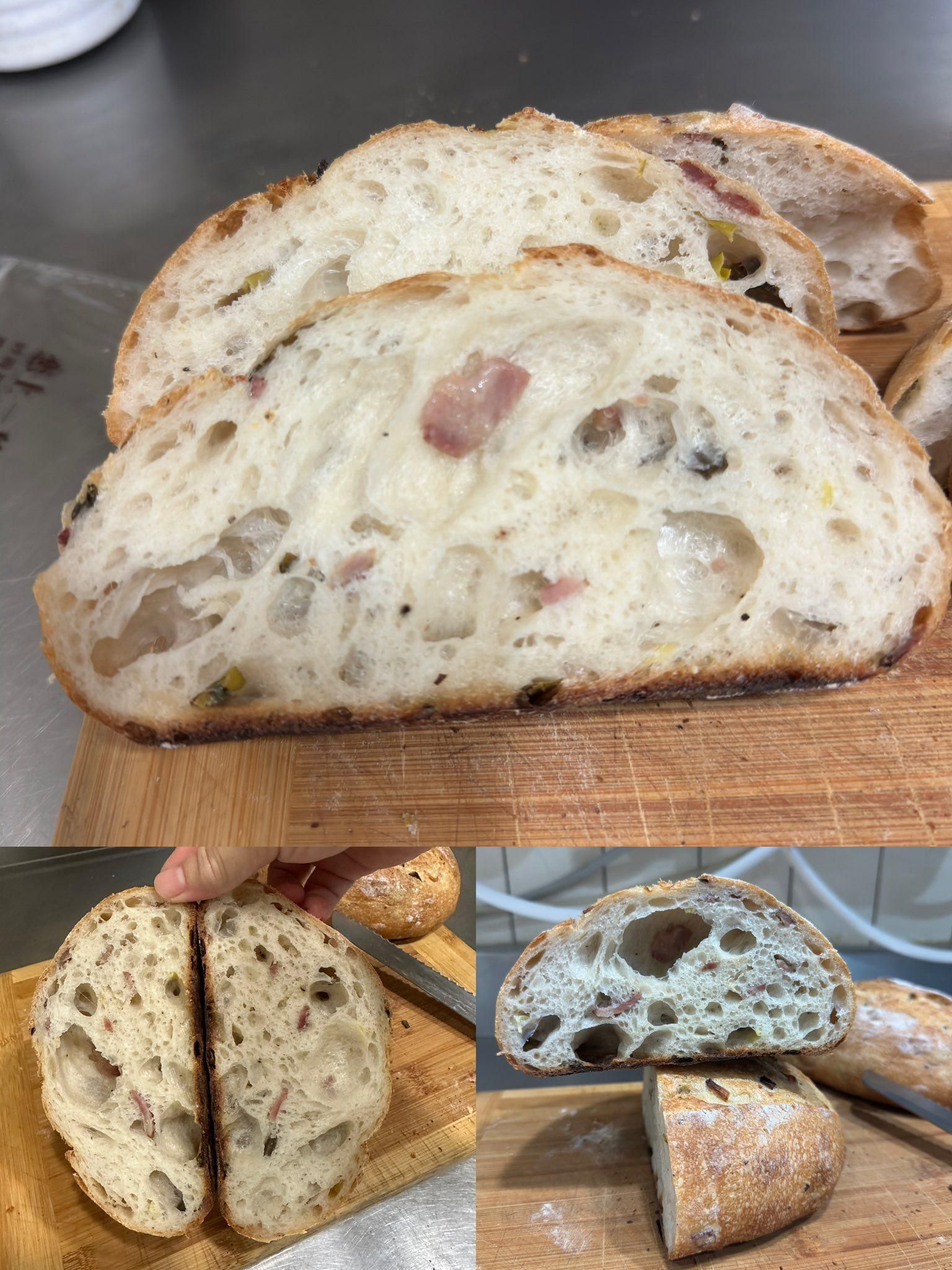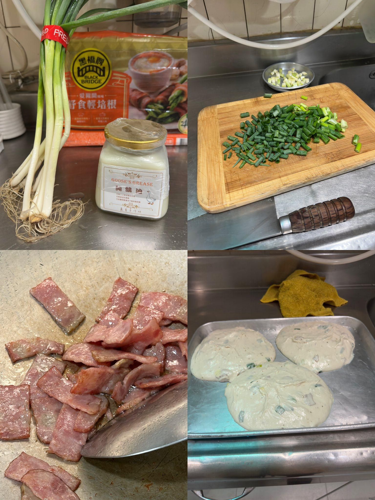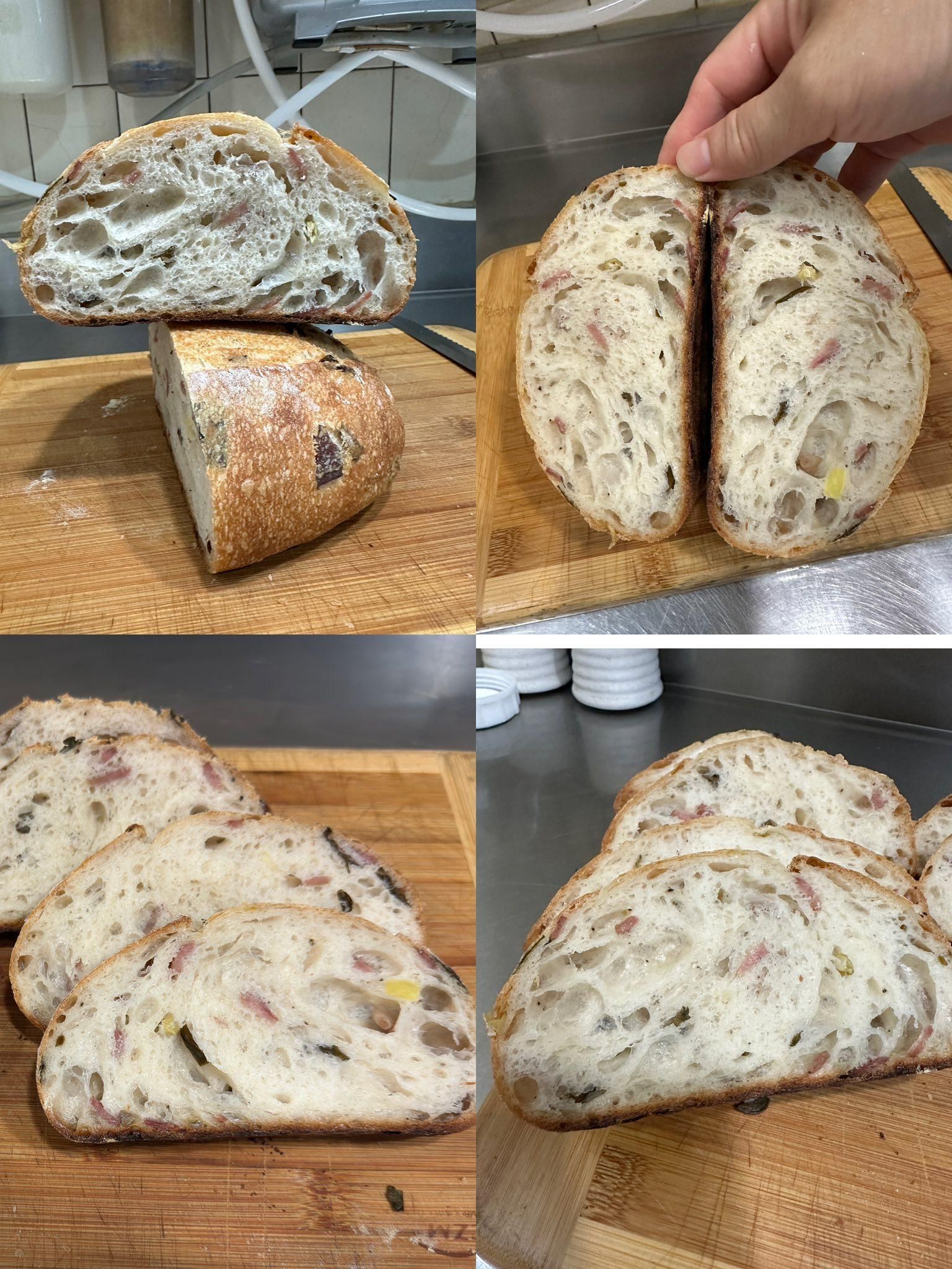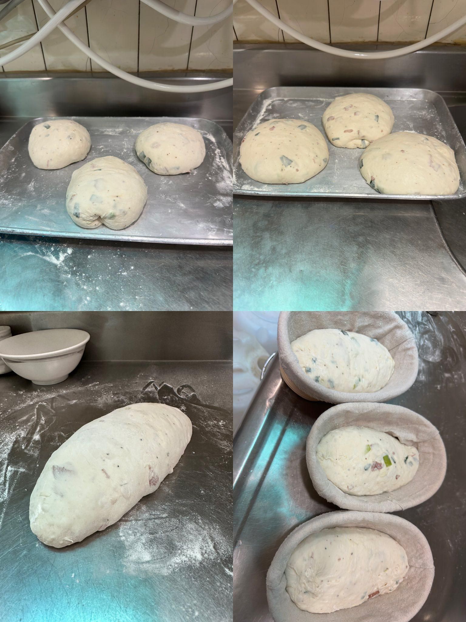 看到攤平的麵糰我的臉都綠了⋯⋯心理想說大概要變成蔥油餅了..好在拉折個3次慢慢挺起來..烤的時候..太香了吧⋯⋯以後不能在吃晚餐前烤.