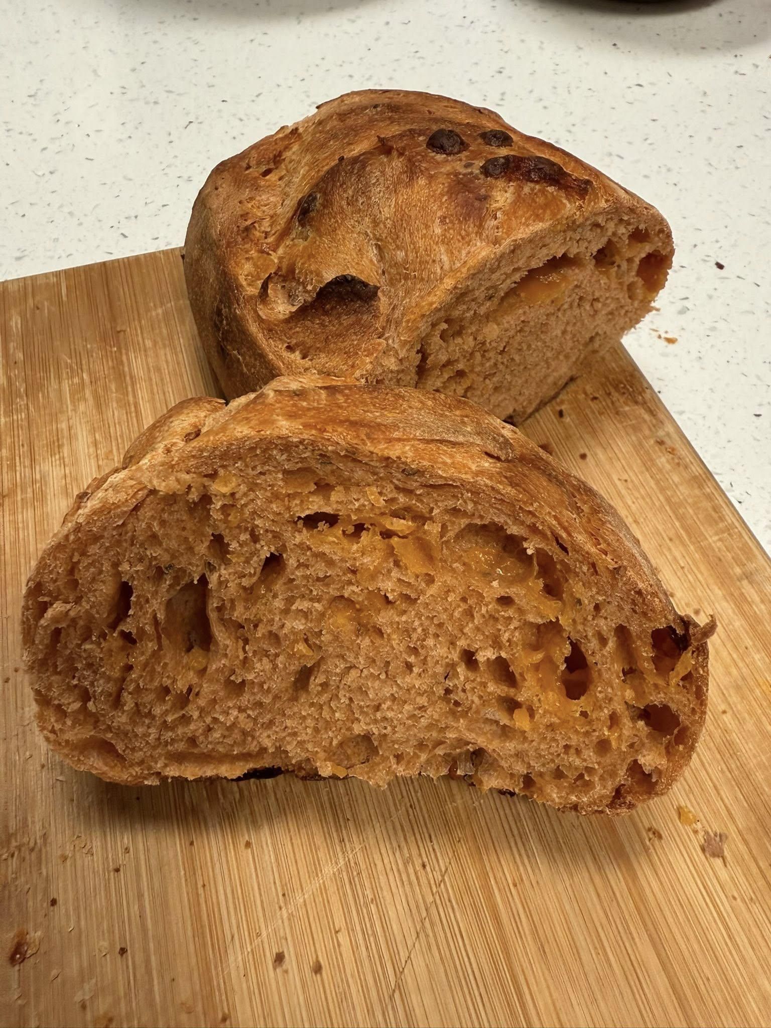 手邊沒有油漬蕃茄,改放義式香料,出爐時根本就像是在披薩屋裡!
