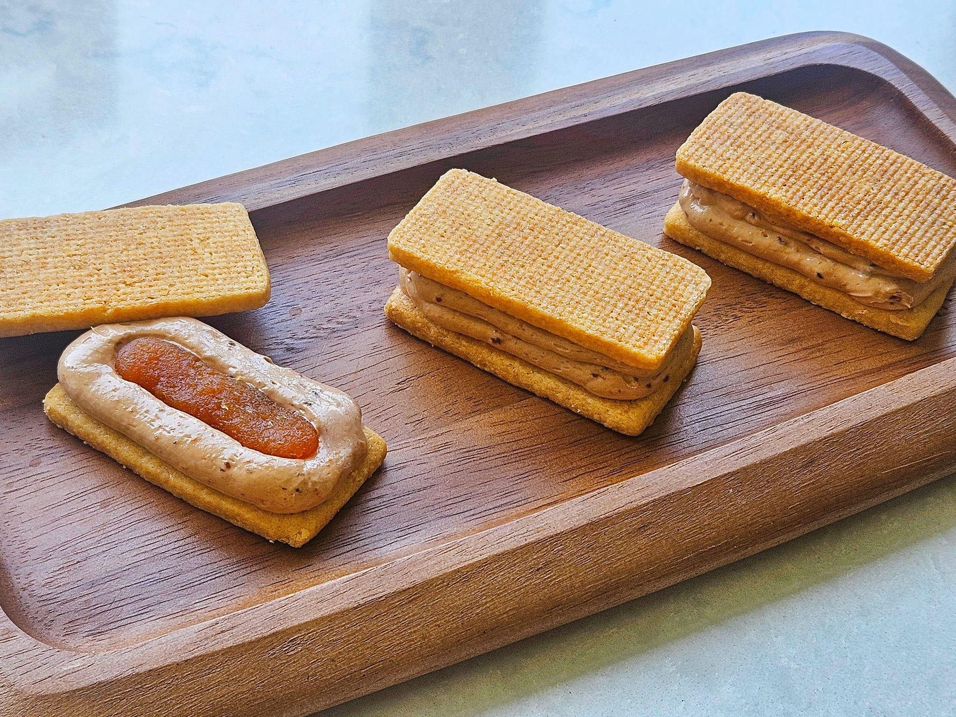 就像老師說的,內餡用了好幾種法式甜點最受歡迎的元素-香草、奶油、巧克力、榛果醬、蛋黃,搭配酸酸甜甜的台灣八卦山土鳳梨餡,是顆奢華版的夾心餅乾!