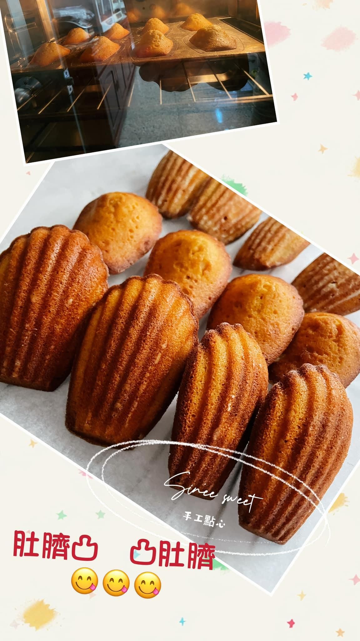 看到凸肚臍就是開心 老師仔細的講解 用容易的方式作出好吃的瑪德蓮 放隔天風味更棒🤩🤩